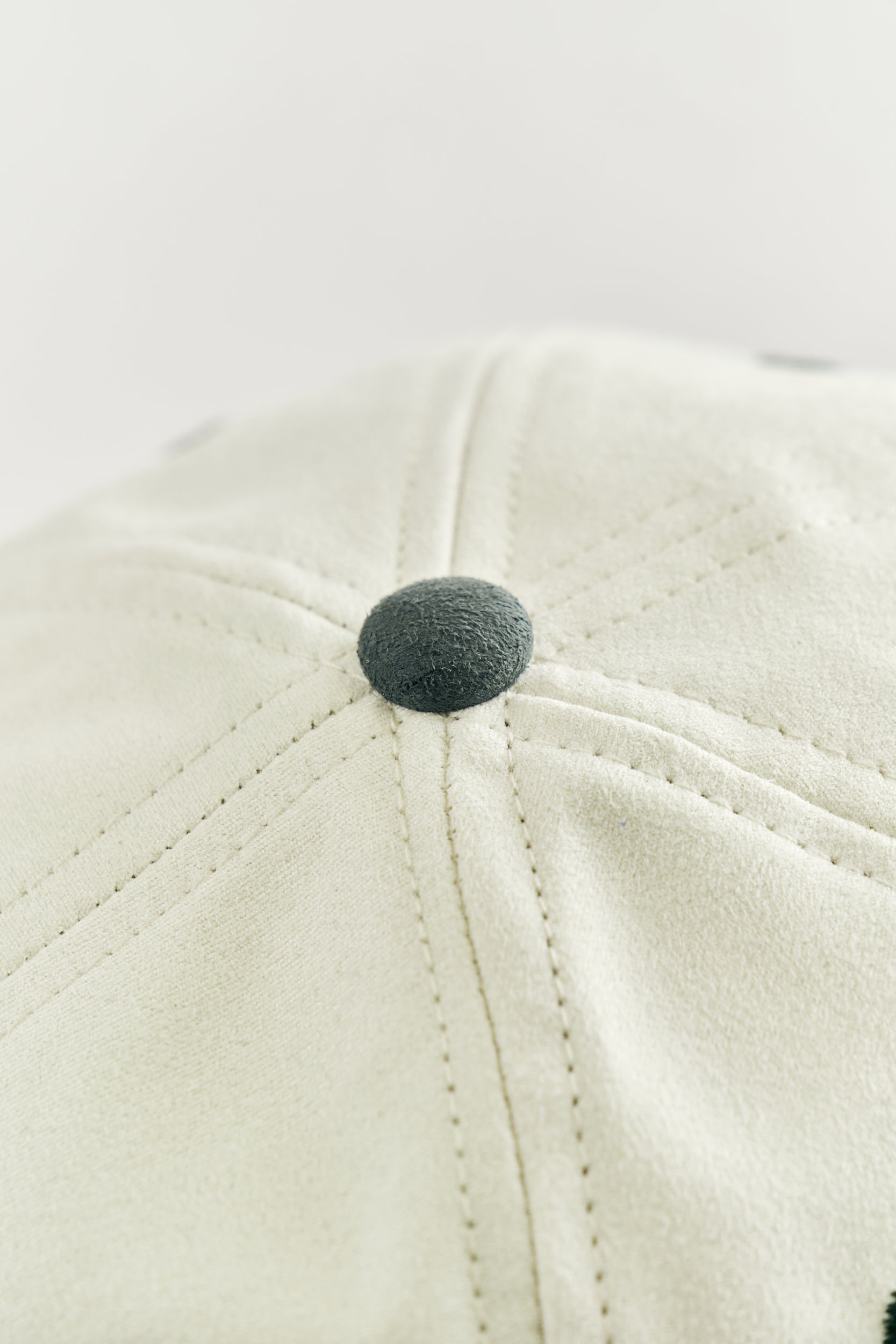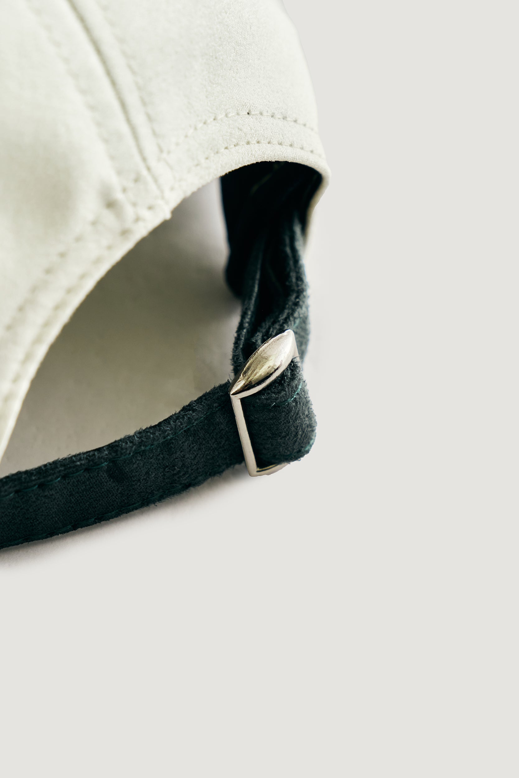 Confeccionado em camurça na tonalidade off white, com aba verde, o modelo equilibra sofisticação e identidade visual marcante. O contraste de cores reforça a estética atemporal da peça, enquanto o acabamento em materiais nobres garante textura, conforto e presença.
