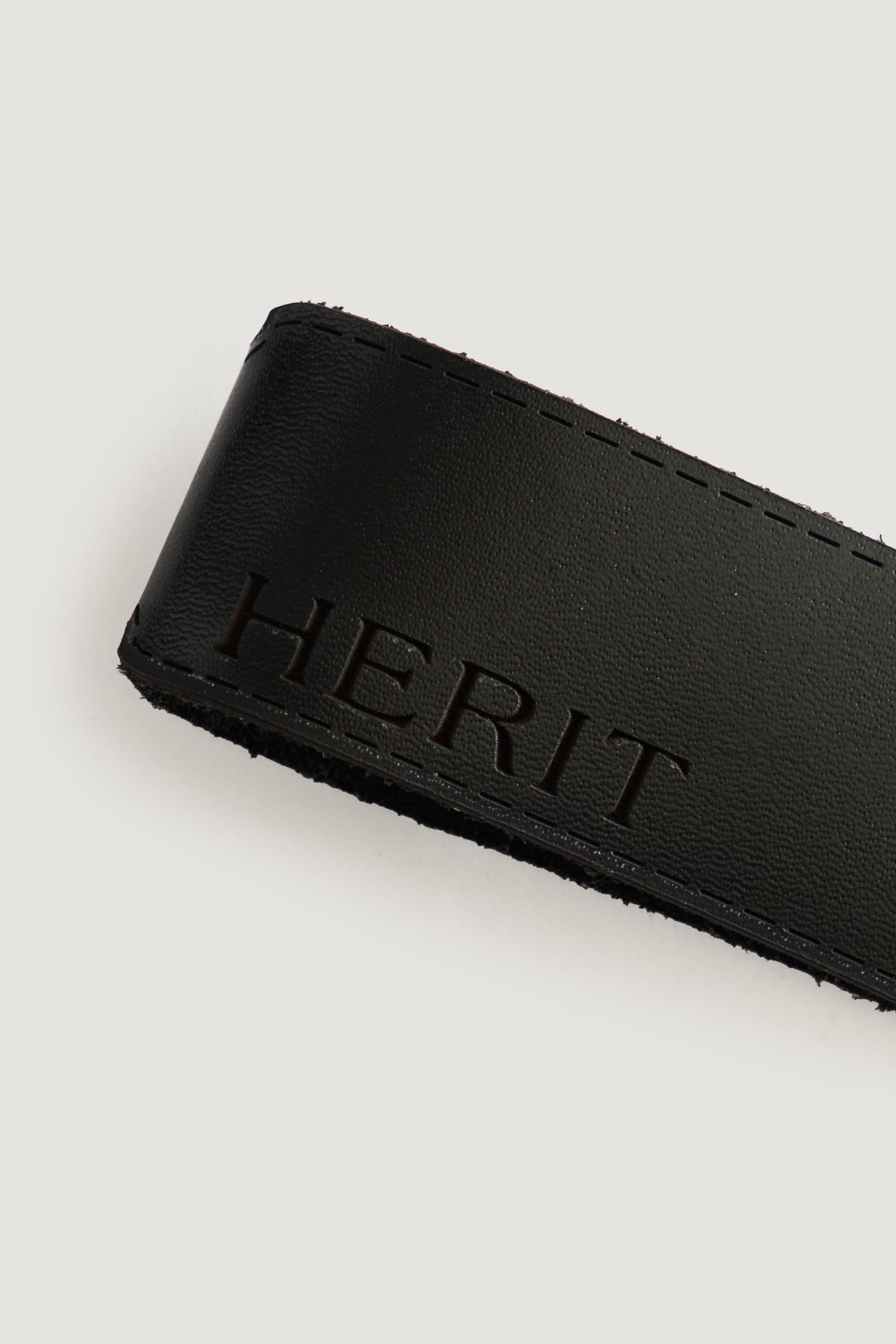 Produzido em couro preto e finalizado com a logo Herit gravada, o chaveiro carrega a identidade da marca de forma sutil e atemporal. Um objeto pensado para acompanhar rotinas, caminhos e histórias — reforçando o conceito de herança que define a Herit.