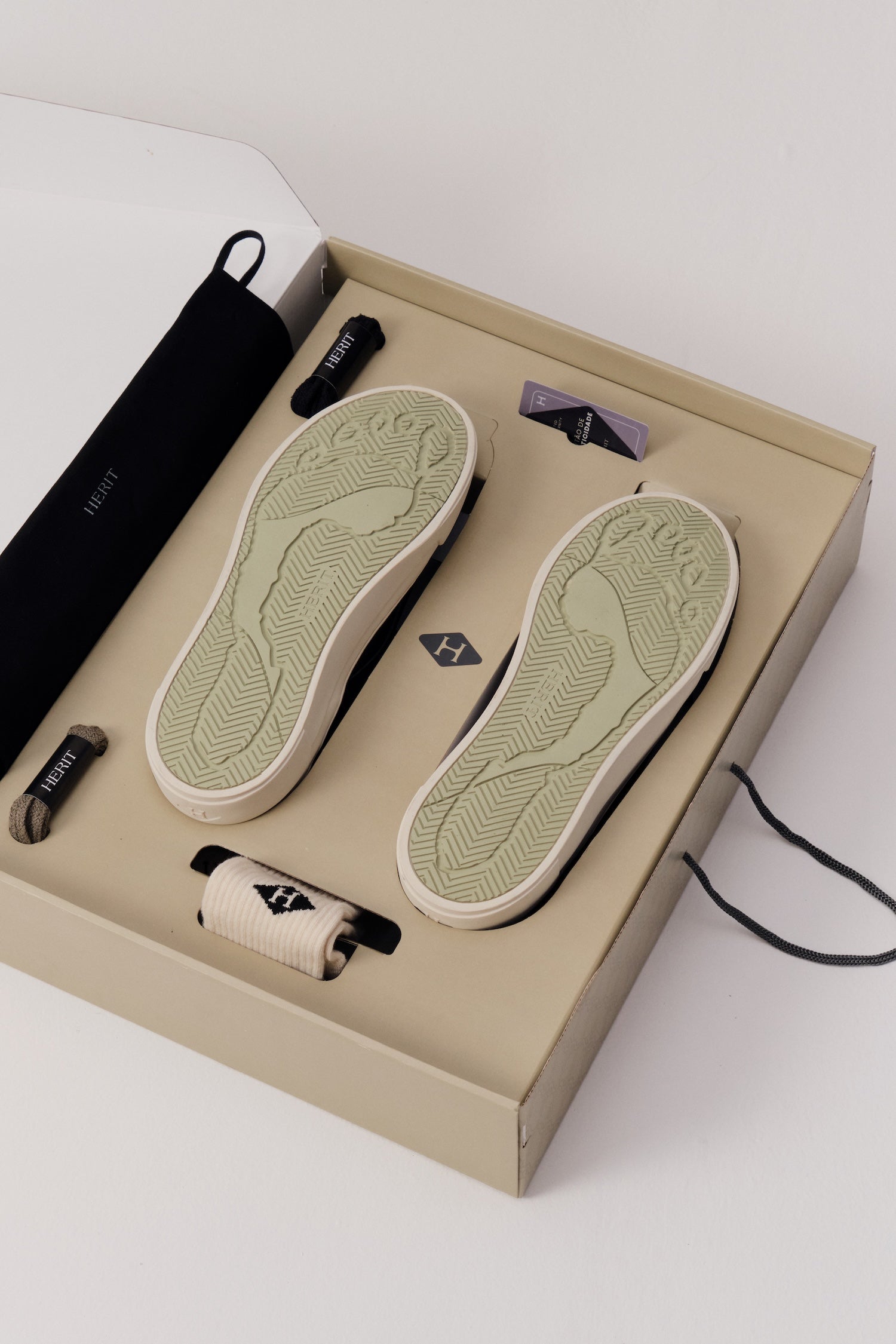 Os sneakers Herit calçam levemente acima do padrão. Recomendamos seu tamanho habitual para um ajuste confortável, ou meio/um número abaixo caso prefira um caimento mais justo.