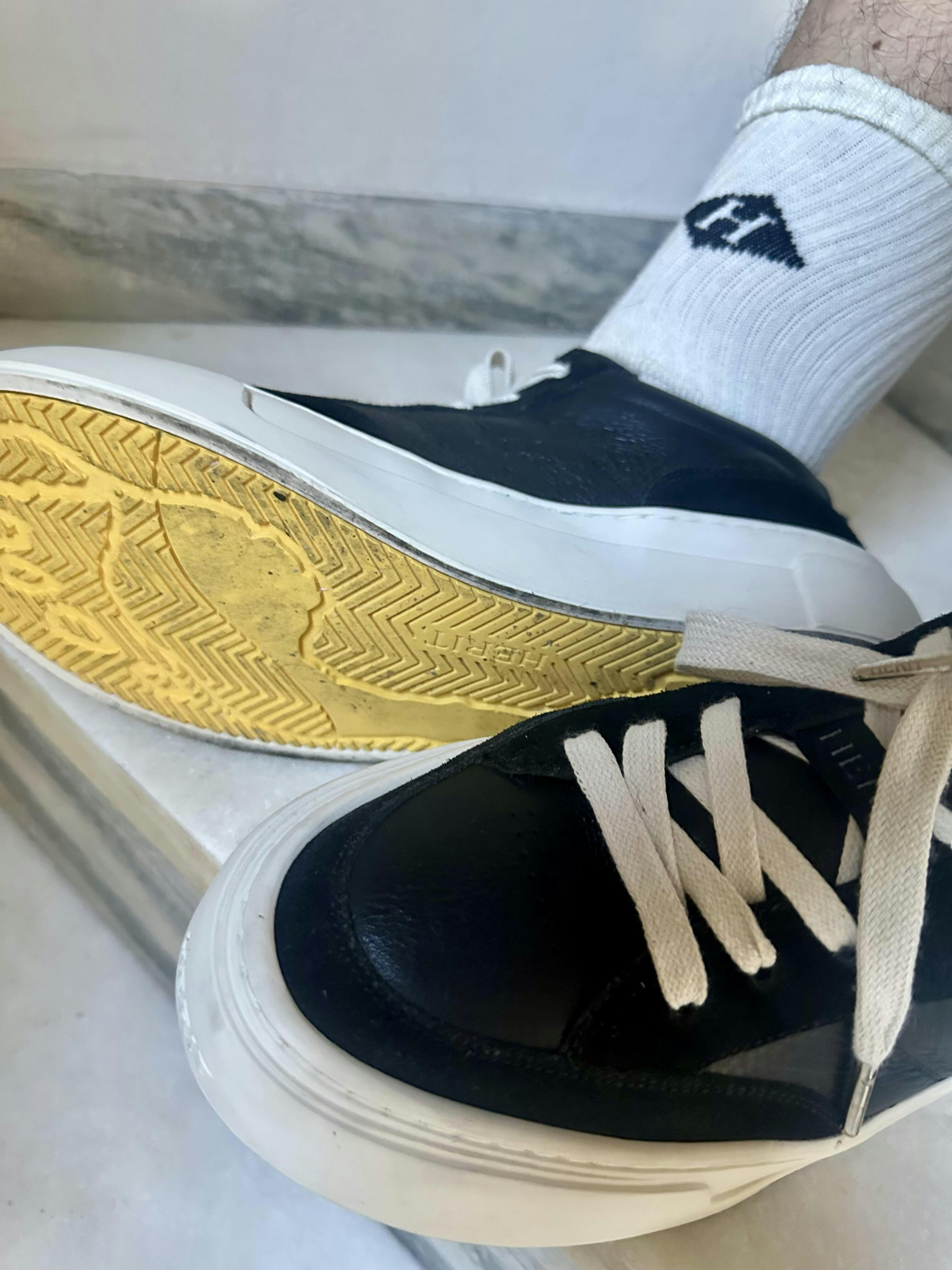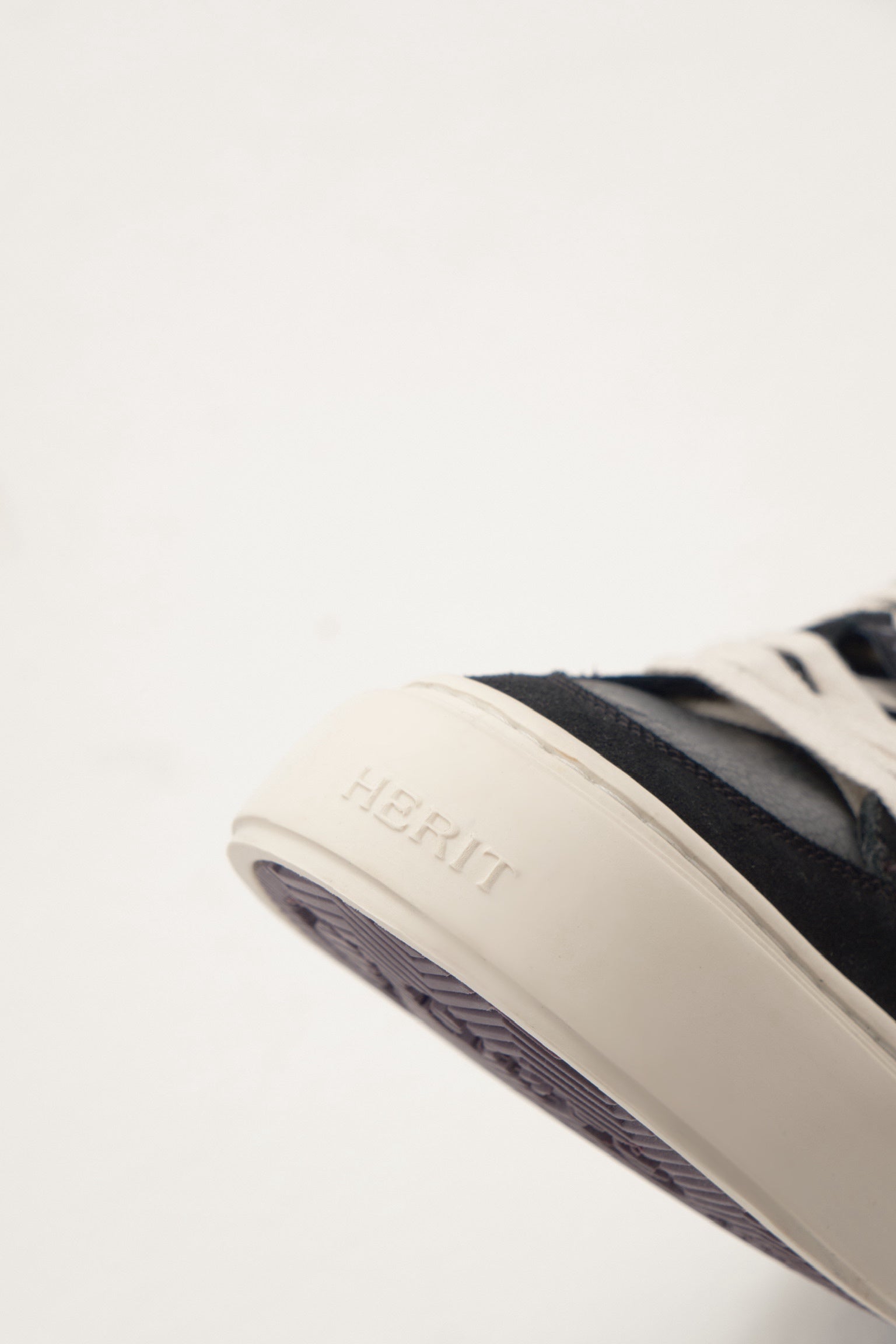 Os sneakers Herit apresentam uma forma levemente maior que o padrão do mercado. Recomendamos optar pelo seu tamanho habitual para um ajuste confortável ou considerar um número menor caso prefira um caimento mais justo.