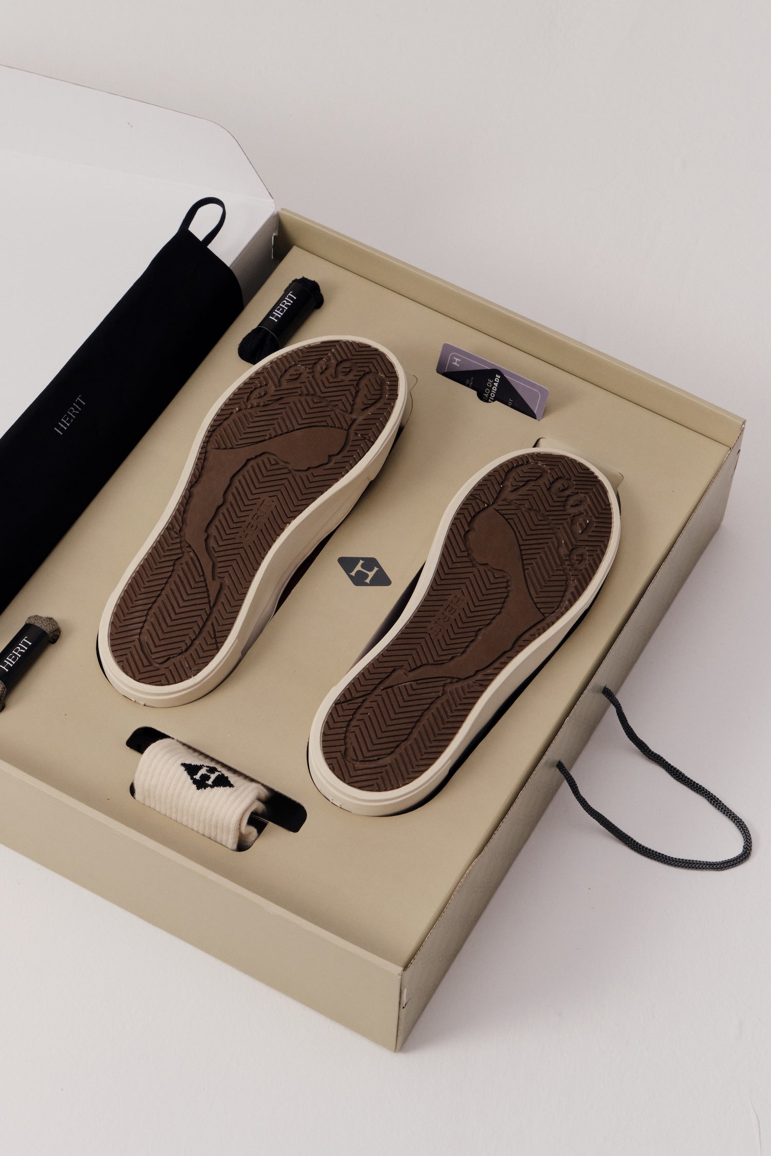 Os sneakers Herit calçam levemente acima do padrão. Recomendamos seu tamanho habitual para um ajuste confortável, ou meio/um número abaixo caso prefira um caimento mais justo.